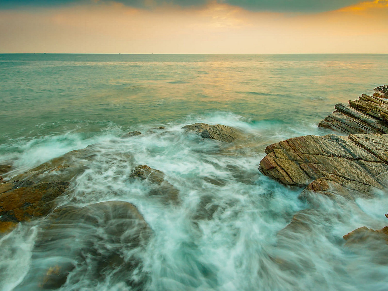 Coast, sea, stones, stream, dusk 1600x1200 Wallpaper