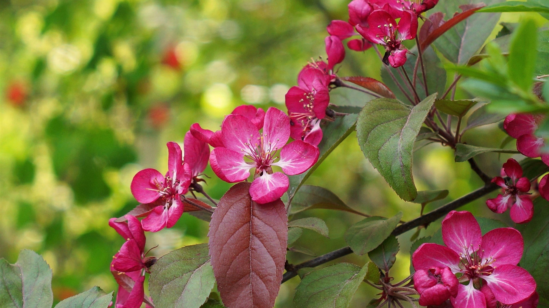 Pink flowers, bloom, leaves, spring 1920x1080 Wallpaper