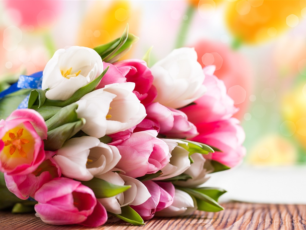 Spring, tulips, flowers, white, pink 1024x768 Wallpaper